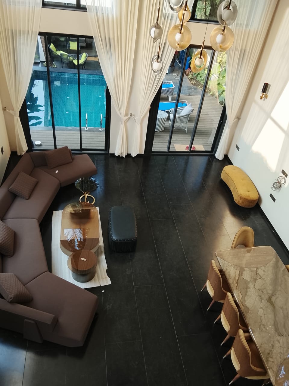 Courtyard Villa is an ultra-luxury 5BHK residence located on the sought-after Anjuna–Assagao Road, one of North Goa’s most premium villa neighbourhoods. Set on a 565 sq m plot, the villa is thoughtfully designed around a private courtyard, offering a seamless connection between indoor and outdoor living. Expansive interiors feature a double-height living room, spacious bedrooms with en-suite bathrooms, and a designer kitchen ideal for entertaining.